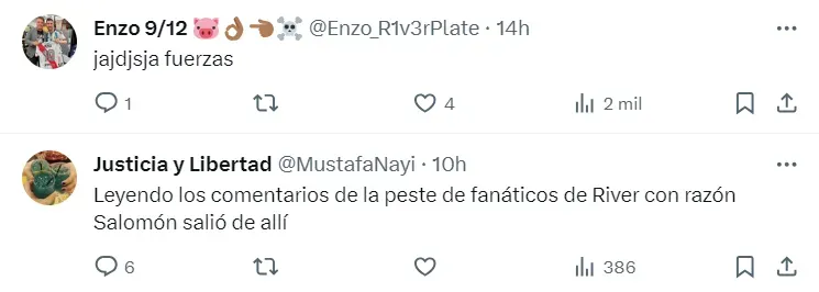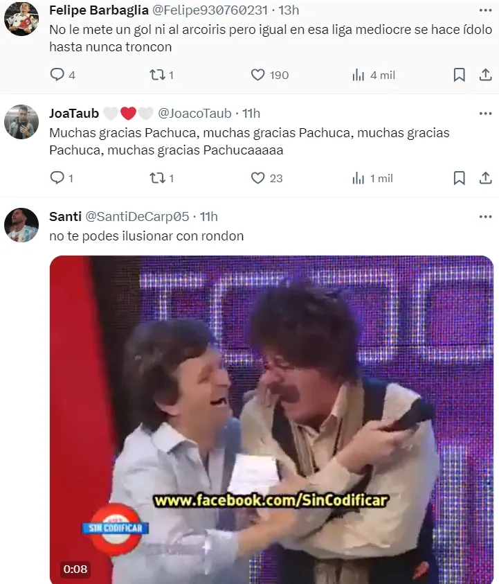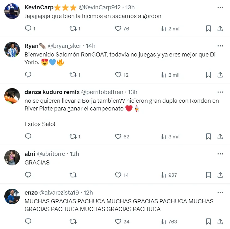 Al video de Rondón presentándose como refuerzo de los Tuzos lo acompañaron varios comentarios de hinchas de River. En su gran mayoría eran burlas al delantero venezolano, inclusive hubo varios memes. En líneas generales, los fanáticos del Millonario inundaron los comentarios con posteos agradeciendo al club mexicano por habérselo llevado, cuestionando su paso por el club de Núñez y sobre todo en la falta de gol del atacante.