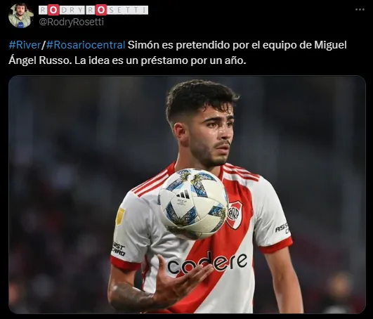 Según informó Rodrigo Rosetti, periodista de D-Sports, Rosario Central pretende a Santiago Simón como refuerzo para el próximo mercado. El jugador saldría de River a préstamo para ganar más rodaje, y en el equipo de Miguel Ángel Russo, que busca seguir con vida en la Copa Libertadores, contarían con un futbolista polivalente que ha tenido 99 partidos disputados en el Millonario entre el ciclo de Gallardo y el de Martín Demichelis. ¿Será Simón la primera baja para River en el mercado?