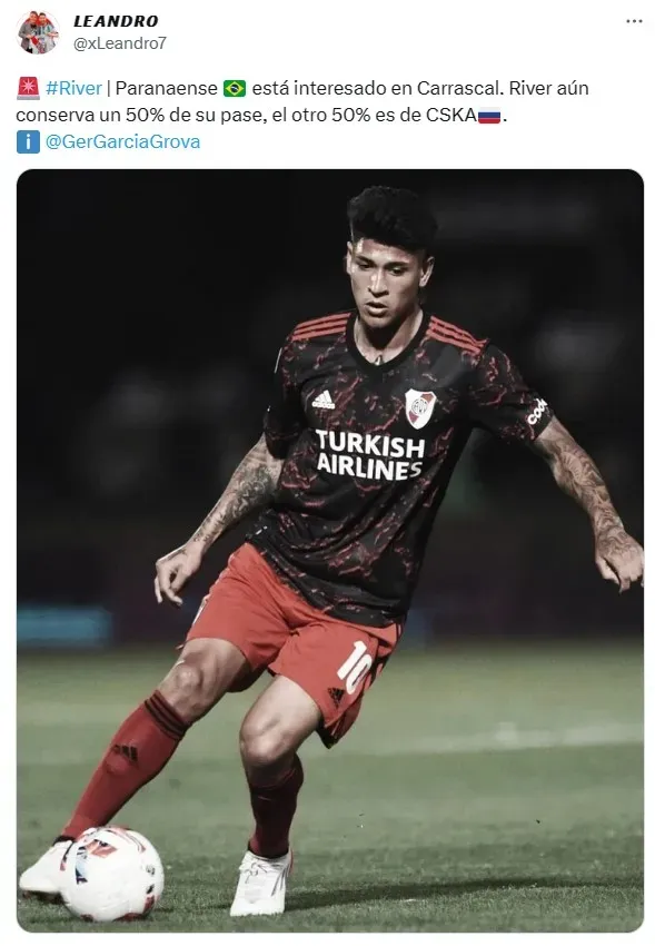 Según informó el periodista Germán García Grova, Athletico Paranaense tiene a Carrascal en carpeta para el presente mercado de pases y buscará negociar un préstamo desde Rusia, una operación que, a priori, parece complicada. En caso de arribar al Brasileirao, el colombiano podría volver a verse las caras con el Millonario si ambos equipos avanzan a cuartos de final. ¿Cómo lo recibirían en el Monumental?