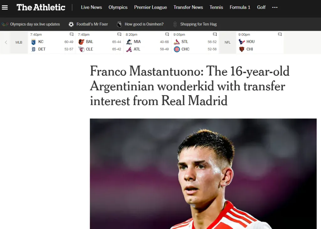Entre otras cosas, el mencionado periódico norteamericano destaca a Mastantuono no solamente por sus evidentes condiciones sino también por su impresionante proyección y por el hecho del seguimiento por parte de la propia Casablanca.