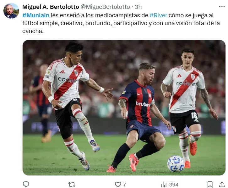 En las redes sociales se llenó de mensajes de reprobación a Leandro González Pirez y también hubo pedidos para que River contrate a Iker Muniain en el próximo mercado de pases. San Lorenzo atraviesa un presente complicado a nivel económico y muy probablemente varios jugadores dejen el club de cara al 2025. No solamente hubo pedidos para que llegue al club el próximo año, sino que también hubo elogios por cómo jugó y además se destacó que no haya gritado el gol.