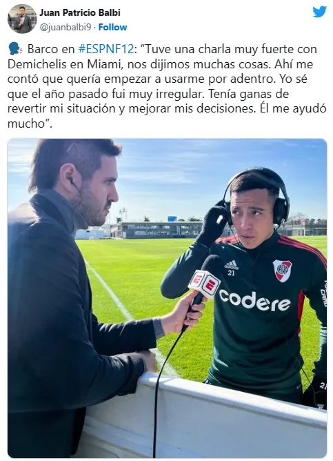 Por supuesto, la autocrítica no faltó. “Yo sé que el año pasado fui muy irregular. Tenía ganas de revertir mi situación y mejorar mis decisiones. Él (Demichelis) me ayudó mucho“, concluyó Barco, una vez más, agradeciéndole a su entrenador. Hoy, ambos campeones del fútbol argentino, sueñan con ganar la CONMEBOL Libertadores juntos.