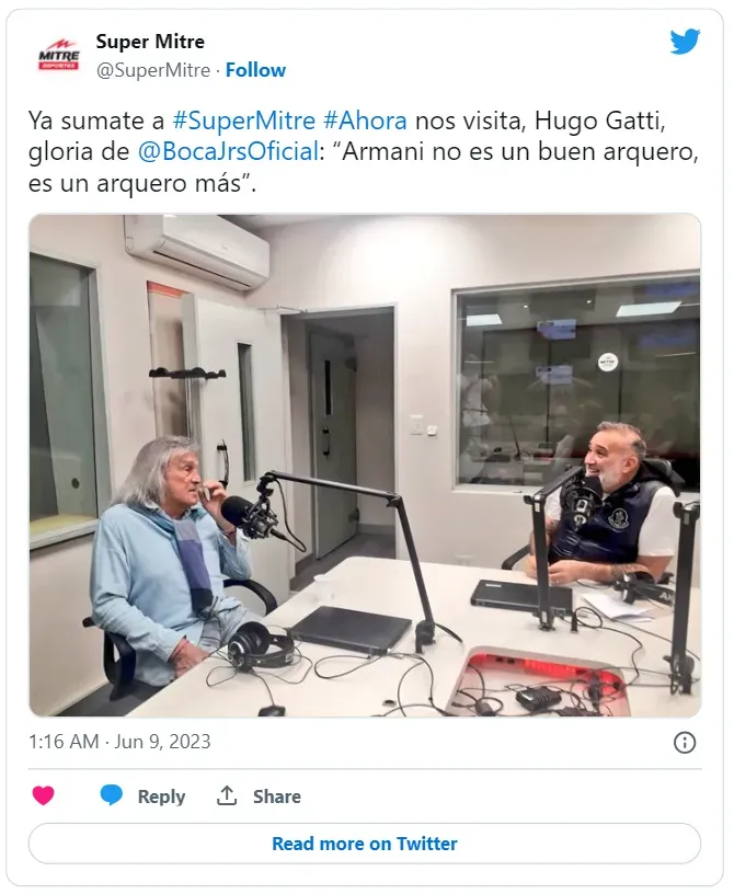 “¿Te parece buen arquero Armani?”, le preguntaron al Loco en Radio Mitre. “No. Es uno más del fútbol argentino”, respondió. Después de esa contundente opinión, agregó: “Jugó en River, tuvo un buen momento, pero ahora lo veo inseguro, sin confianza”.