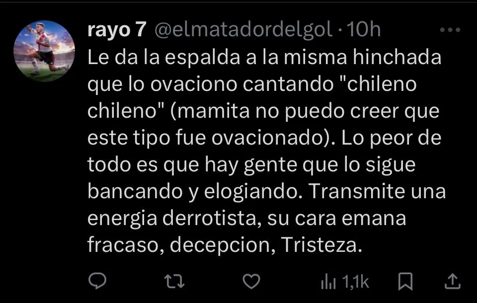 Poco tiempo fue el que necesitó el video para viralizarse a través de las redes sociales. Fue allí donde, bajo un contexto de profundo malestar de todo el público millonario, el no saludo del defensor chileno no pasó inadvertido, despertando nuevos cuestionamientos acerca de su presente futbolístico como de su ciclo completo en el club.