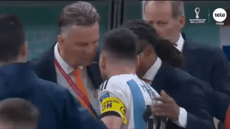 Tras el partido,Lionel Messi, que le festejó su gol en la cara a Van Gaal por las declaraciones previas al partido, en donde disminuyó al delantero argentino y habló de que su equipo tendría ventaja en una posible tanda de penales, fue a encarar al entrenador neerlandés.