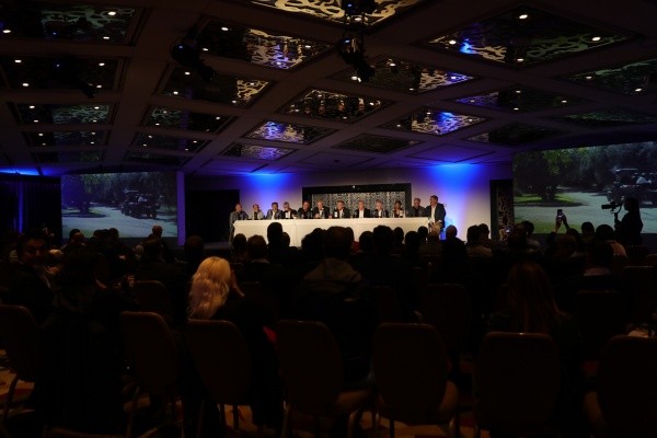 La conferencia estaba programada para las 19.30, aunque la prensa y los protagonistas fueron arribando de manera aislada con cierta demora. El último de los campeones en ingresar fue Óscar Ruggeri, quién 23 minutos después de la hora establecida abrió la charla agradeciendo y bromeando con los presentes. La intención desde el primer momentofue esa: generar un clima cálido con quiénes ocasionaron una de las alegrías más grandes de los argentinos.