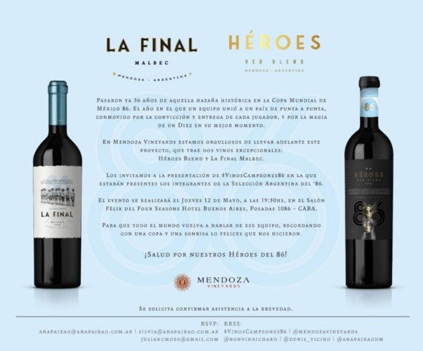La hazaña lograda en 1986 sigue dando sus frutos y, esta vez, de manera literal y no solo simbólica. Dos vinos, “Héroes Blend” y “La Final Malbec” fueron inaugurados en homenaje al plantel campeón de la Copa del Mundo de México, segunda -y última- conquista argentina en toda su historia. Desde Bolavip, tuvimos la oportunidad de estar presentes en la ceremonia.