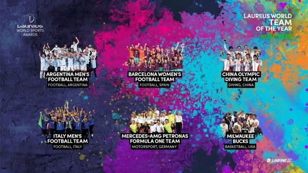 Los premios serán entregados en baril en la ciudad de Sevilla, España. Argentina no está sola en la nominación: comparte la terna con el Barcelona femenino (esta temporada ganó la Champions League, además de la Liga, la Copa de la Reina y recientemente la Supercopa); la selección de Italia (ganador de la Eurocopa); los Milwaukee Bucks (ganaron su segundo título de la NBA en 50 años); el equipo Mercedes de F1 (por el título de Constructores 2021); y el equipo olímpico de saltos ornamentales de China (en Tokio tuvo su mejor actuación histórica con siete oros en ocho eventos).