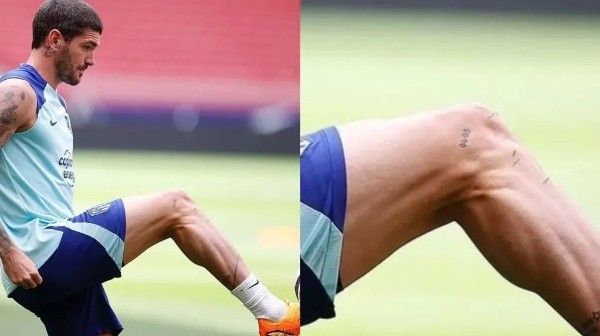 Rodrigo De Paul, que lleva varios tatuajes en la piel, sorprendió con uno nuevo durante las prácticas del Atlético De Madrid. Por encima de la rodilla, se vio que se tatuó una fecha, el 06/05. Casualmente, coincide con la fecha de la publicación que encendió las alarmas.