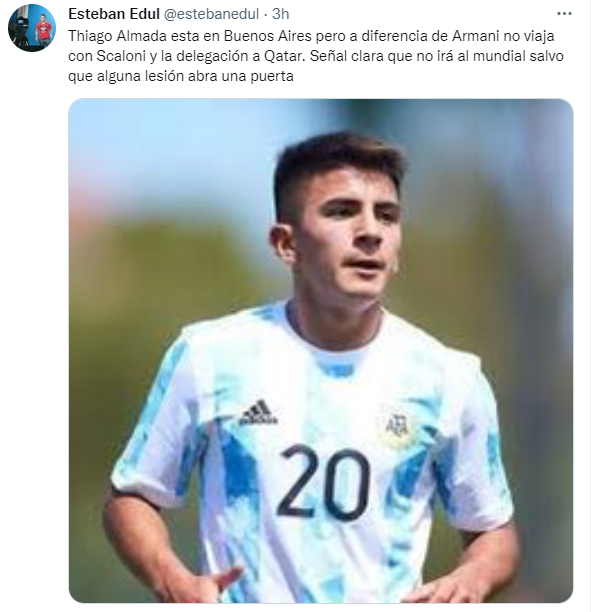 En el caso del exdelantero de Vélez y actual figura del Atlanta United, Edul adelantó que Almada todavía no programó su vuelo a Qatar porque las posibilidades de ser citado son mínimas. Sin embargo, las lesiones de última hora podrían subirlo al avión en medio de semanas de bajas importantes como la de Giovani Lo Celso.