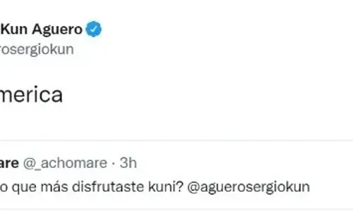 Ante la consulta de un seguidor en Twitter, el Kun respondió con total firmeza: “La Copa América”. Claro, después de 28 años, la Selección Argentina volvió a alzar un título y el ex Atlético de Madrid formó parte del plantel, donde pudo coronarse después de integrar a la Albiceleste desde septiembre de 2006.