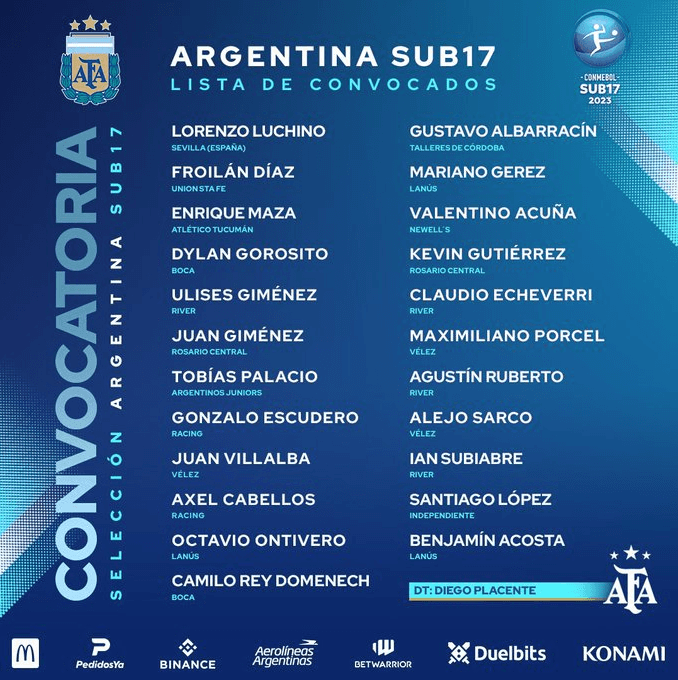 + La lista de convocados de Argentina para el Sudamericano Sub-17:
