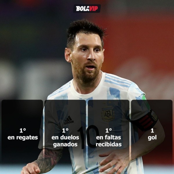 Terminó siendo un gran partido de Messi. Leo fue el jugador que más regate completó (6), el que más faltas recibió (5) y el que más duelos ganó (13) en el partido. Y además, anotó el único gol argentino. Si tenía suerte, se iba de la cancha con un doblete. Próximo rival: Colombia, el próximo martes, en Barranquilla.