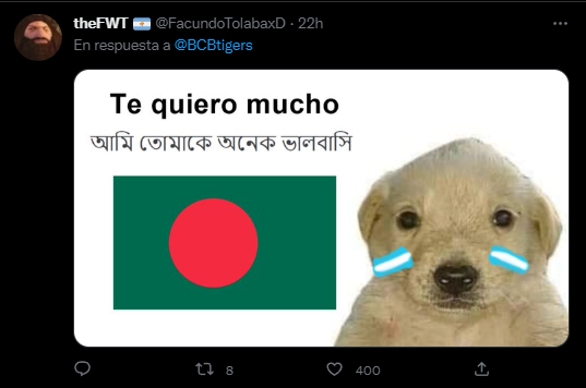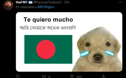 Y así como hicieron los asiáticos con la Selección Argentina física y virtualmente apoyándola en Qatar 2022, en las redes sociales los hinchas albicelestes hicieron lo mismo para el crícket banglasesí. Incluso, se hizo una fanpage en Facebook que también se volvió viral y que ya cuenta con más de 20 mil miembros. ¡Qué locura!