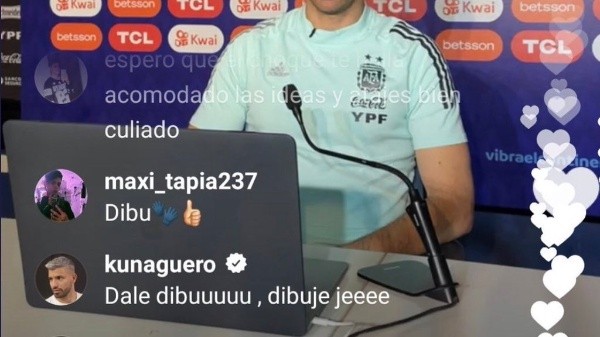 Más adelante, el Kun volvió a querer molestar a Emiliano Martínez y hasta bromeó con su apodo. “Dale Dibuuuuu, dibuje jeeee”, escribió Agüero haciendo un juego de palabras. Si el otro día se había metido al vivo de Instagram para atacar a los malos comentarios, en esta oportunidad Sergio se divirtió al igual que todos en el chat.