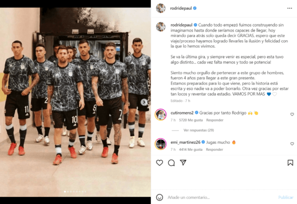 El final del encuentro de ayer tuvo una importante carga emotiva, ya que en poco más de un mes se vendrá el torneo que todos desearon jugar cuando arrancó el proyecto. Rodrigo De Paul, uno de los que apareció con la renovación para no salir más, dejó un emocionante mensaje en Instagram.