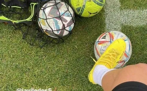 En esta ocasión, el delantero de 18 años, subió a sus historias de Instagram una foto en la que se ve una canchade fútbol. en la que está pisando la misma pelota del Mundial y deja observar que lleva puesto el short de entrenamiento de la Selección Argentina.