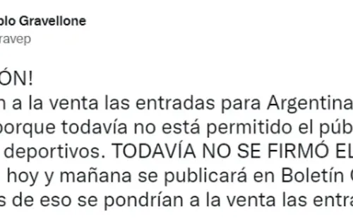 El reloj sigue corriendo y las personas que desean asistir al Argentina-Bolivia aún no han podido reservar su asiento. En las últimas horas se dio a conocer que el motivo que está retrasando la venta de boletos es que el Gobierno Nacional aún no ha firmado el Decreto de Necesidad y Urgencia (DNU) que habilita el regreso del público a los estadios del fútbol argentino.