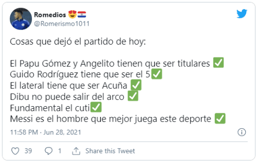 Cuando parecía que el XI salía de memoria, los buenos rendimientos individuales empezaron a poner incógnitas sobre cuál sería el equipo ideal del DT. Alejandro Gómez, Marcos Acuña, Ángel Correa y Nahuel Molina son algunos de los que arrancaron de atrás ydemostraron que pueden ser titulares. Sin embargo, la gente eligió a uno en particular y lo hizo tendencia.
