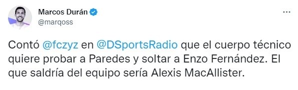 Inesperadamente, el “sacrificado” en el eje sería ni más ni menos que Alexis Mac Allister. ¿El motivo? Poder soltar a Enzo Fernández como interior, como lo ha hecho en los tramos finales de los partidos en Qatar, y completar el triángulo con el intocable Rodrigo De Paul. Una decisión controversial, que claramente tendría su sentido, pero que no deja de llamar la atención teniendo en cuenta el gran torneo que está haciendo el volante del Brighton.