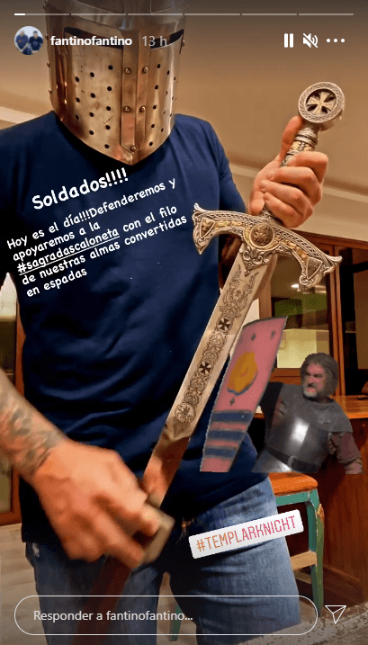 “Soldados! Hoy es el día! Defenderemos y apoyaremos a la #SagradaScaloneta con el filo de nuestras almas convertidas en espadas“, puso en su historia junto a su foto con el particular uniforme. Hagamos todos como Fantino y apoyemos a la Scaloneta para la final de hoy.