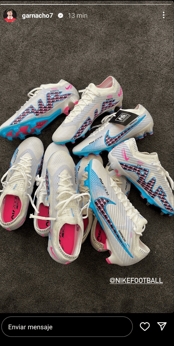 A través de su cuenta de Instagram, en una historia Garnacho mostró sus nuevos botines y allí se pudo ver que, además de su apellido, el futbolista de 18 años personalizó sus pares con la bandera argentina. Claro está que en nuestros país, en las redes los usuarios enloquecieron. No es para menos: una de las máximas promesas del fútbol mundial es nuestra, y nos eligió.