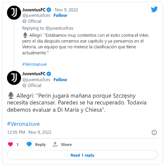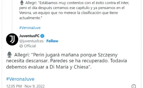 El DT de la Vecchia Signora no se animó a confirmar el regreso de Ángel Di María, quien también está con algunas complicaciones musculares. “Todavía debemos evaluarlo”, dijo el italiano. ¿Llegará Fideo a sumar minutos?