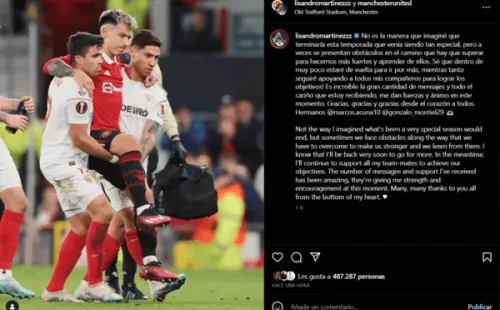 Tuvieron que pasar 48 horas para que el zaguero rompa el silencio en sus redes. Con la foto de Montiel y Acuña ayudándolo a salir del campo de juego, Licha dejó un mensaje: “No es la manera que imaginé que terminaría esta temporada que venía siendo tan especial, pero a veces se presentan obstáculos en el camino que hay que superar para hacernos más fuertes y aprender de ellos”.