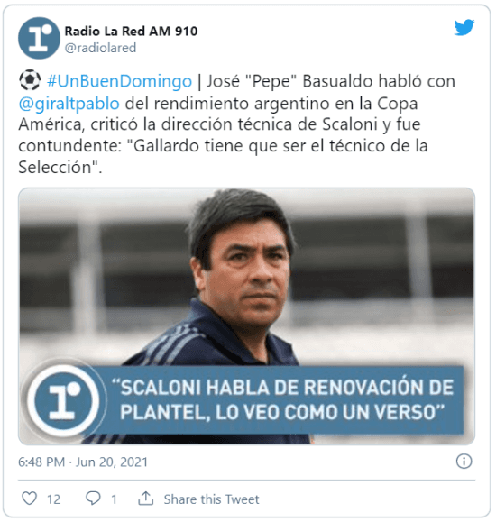 También cuestionó al resto del cuerpo técnico, que cuenta con personalidades como las de Walter Samuel y Pablo Aimar: “El conjunto no tiene experiencia. Acá no pasa por voluntad, pasa por tener la experiencia para dirigir a un equipo de un país futbolero. Estás hablando de Argentina, un equipo que tiene a Messi. A veces parece que dirige a la sub 20 o la sub 23. Hay otros DT que no le dieron el tiempo que le dieron a Scaloni”