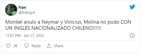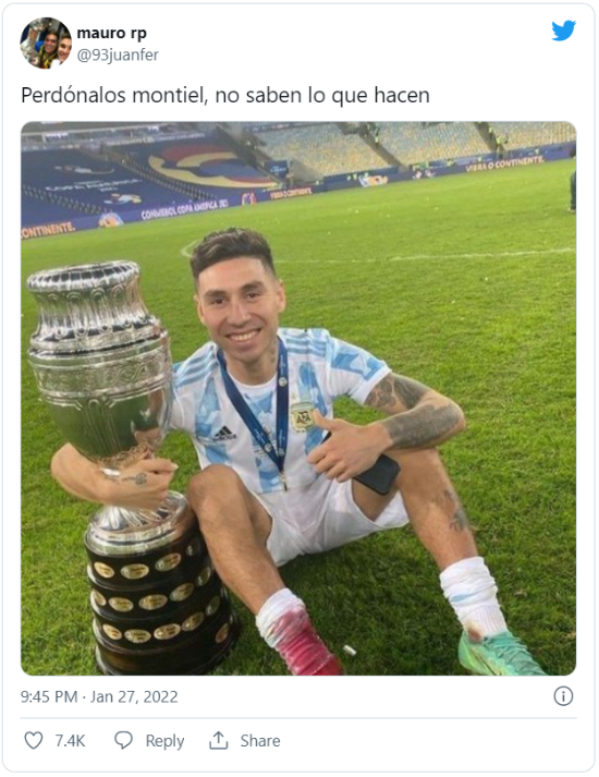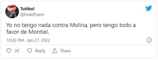 Se trata de Gonzalo Montiel, de excelentísimo nivel en Sevilla pero con pocos minutos en el combinado nacional. Ayer Nahuel Molina sufrió a BenBrereton Díaz en los balones aereos y el ex-River no tardó en hacerse tendencia.