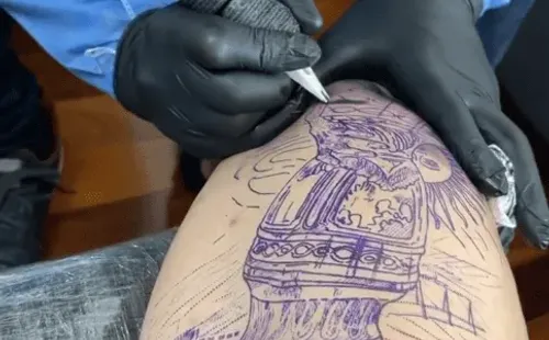 “Arrancando”, subió el crack argentino con la imagen de un tatuador llenando de tinta su muslo. En el dibujo se puede observar el trofeo que alzó hace algunos días y de fondo el sol que tiene la bandera de nuestro país. Un recuerdo que jamás olvidará.