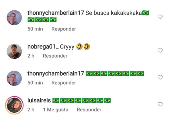 Y la viralización que tuvieron dichas imágenes fue tal que el jugador de Vélez, quien firmó su primer contrato en el club de Liniers hace algunas semanas, continuó siendo el blanco de las cargadas brasileñas también en su propia cuenta de Instagram.