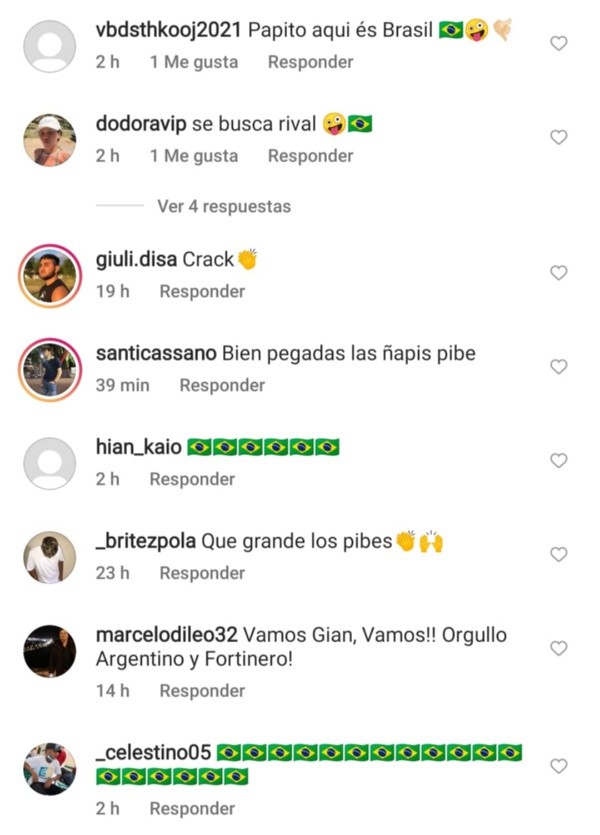 En el último posteo del joven de 16 años, que fue previo a la final de este lunes, cientos de usuarios brasileños comenzaron a hostigarlo y lo llenaron de banderas de su país, insultos, cargadas y todo tipo de provocaciones.