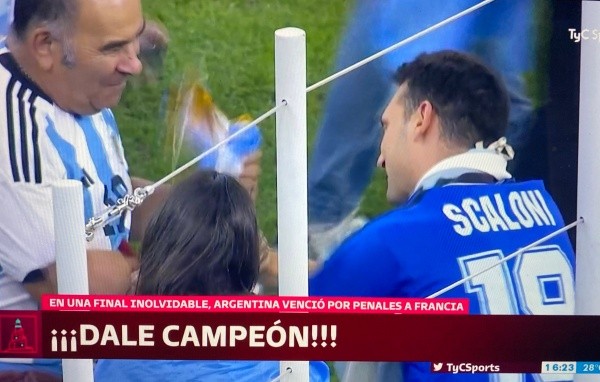 Luego de que la Pulga levantara la Copa del Mundo, pocos pudieron ver a Scaloni con una gran emoción. Y lo que llamó poderosamente la atención, que fue captado por las cámaras de TyC Sports, fue que el entrenador argentino celebró el título mundial con la camiseta de la SelecciónArgentina que se consagró en el Mundial Sub-20 disputado en Malasia, en el año 1997.