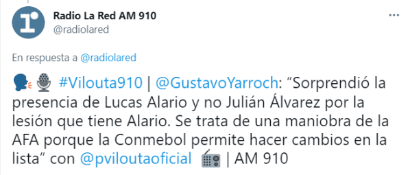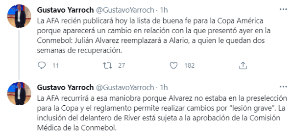 + El tuit de Gustavo Yarroch con respecto a la inclusión de Julián Álvarez