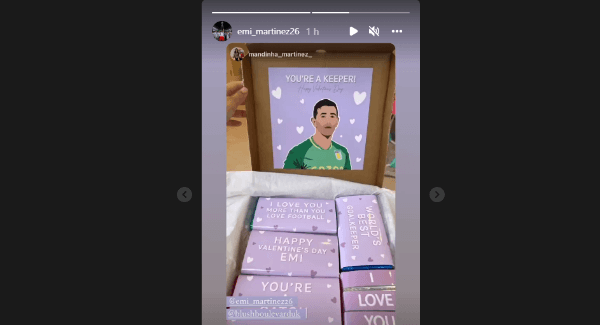 Por motivo del festejo de San Valentín, desde Birmingham compartió los regalos que su esposa le dio este 14 de febrero, dando lugar a lo importante en esta fecha como lo es su enamorada. ¡El lado romántico del mejor arquero del continente!