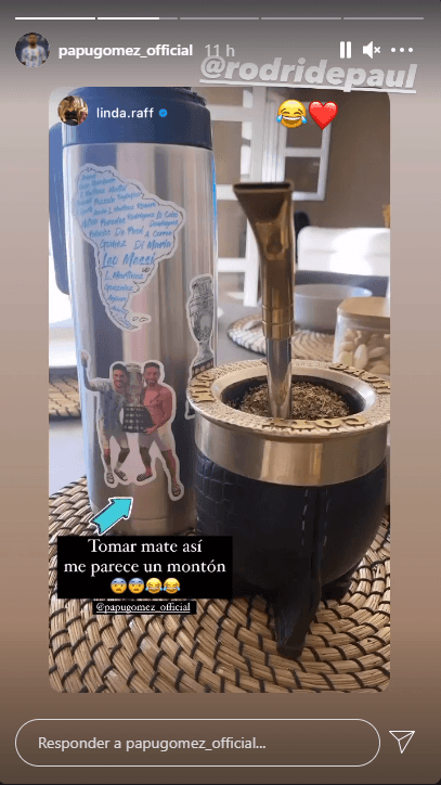 Sobre esto, se quejó a modo de chiste su esposa, Linda Raff. En su historia de Instagram posteó una foto del desayuno de ambos, ya juntos en Sevilla, y en la foto salía la imagen de De Paul y Papu Gómez con la Copa, a lo que ella acompañó la foto con un texto que decía: “Tomar mate así me parece un montón”, y el Papu le respondió con risas y una etiqueta para De Paul, quien no hizo más que sumarse a las carcajadas que surgieron del otro lado. ¡Genial!