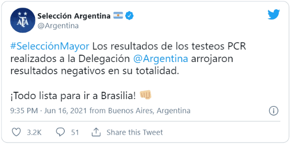 La gran noticia para la delegación es que se realizaron todos los testeos PCR protocolares de Conmebol y niguno de ellos arrojó resultado positivo. Por eso, los 28 futbolistas están habilitados para viajar a Brasilia este jueves.