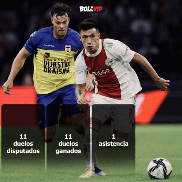 Compartiendo la zaga central conJurriën Timber, Lisandro Martínez es garantía de buenas transiciones y seguridad en los mano a mano. Por cierto, ganó absolutamente todos los duelos que disputó (11/11) y asistió aSébastien Haller para el 7 a 0 parcial. Además, recuperó 12 pelotas. Nivel top.