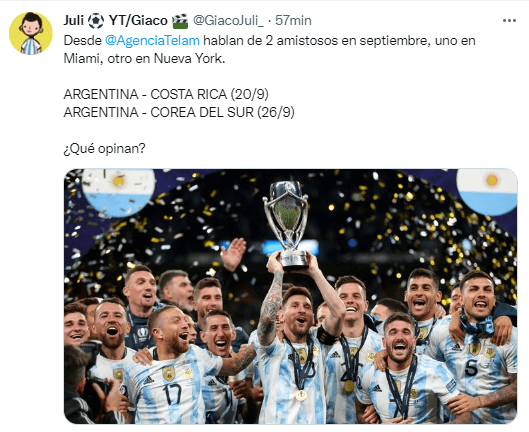 En este caso, los dos partidos que se llevarían a cabo el mes próximo ya estarían prácticamente definidos y ambos son participantes del próximo Mundial. En la gira que comenzará el próximo 19 de septiembre, Argentina se enfrentaría a Costa Rica en Miami(20/09) y a Corea del Sur en Nueva York (26/08).