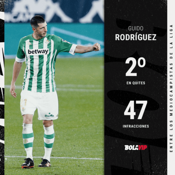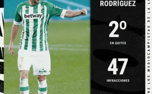 Si tomamos toda la temporada, Rodríguez fue el 2º mediocampista de La Liga con más quites (97),solo detrás de Óscar Valentín de Rayo Vallecano que registró 102. Asimismo, en 32 encuentros disputados, cometió 47 infracciones. Para dimensionarlo, Casemiro realizó 7 faltas más en la misma cantidad de partidos.