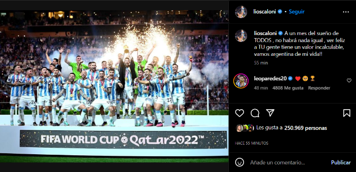 El mejor lugar para recordar esta conquista está en las redes sociales. Tanto los simpatizantes como los propiosjugadores se encargaron de revivir el recuerdo del partido en Lusail. Lionel Scaloni, pese a su perfil bajo, no se quiso quedar afuera de este momento.