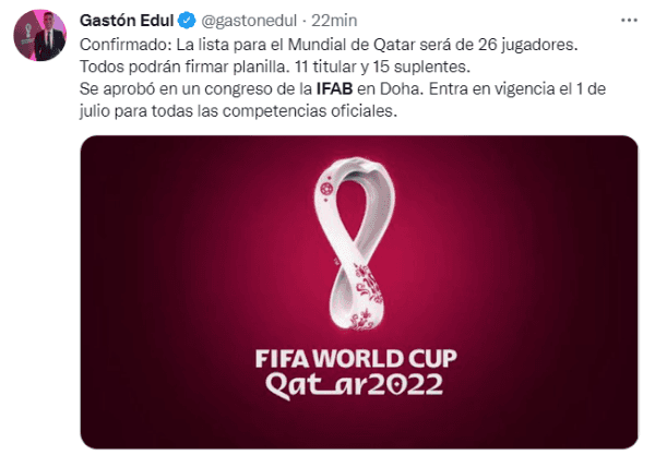 En dicha junta, los miembros de la IFAB comunicaron un cambio histórico pensando en la próxima cita grande de noviembre: la lista mundialista podrá ser firmada por 26 jugadores en vez de 23, dándole cobertura a los entrenadores pensando en posibles casos de COVID-19 dentro del período que se llevará a cabo en Qatar 2022.