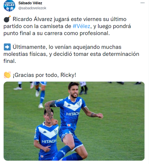El onceavo abandono profesional de aquel plantel argentino de Brasil 2014 se producirá en las próximas semanas dentro de la Liga Profesional. “Ricky” Álvarez colgará los botines con Vélez Sarsfield en el próximo compromiso del Fortín, según anunciaron medios partidarios durante el inicio de esta semana. Las lesiones tuvieron un rol clave en la decisión del talentoso volante que, curiosamente, en el Mundial de 2014 ingresó por Lionel Messi a falta de media hora para que terminara el partido contra Nigeria donde la Pulga anotó 2goles. Fue el único encuentro de Álvarez en aquel subcampeonato.
