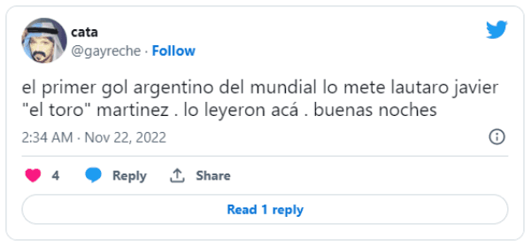 ¿De qué se trata? Resulta que son muchos los que consideran que el Toro convertirá un gol en el partido de hoy. De hecho, la gran mayoría cree que será el que marcará el primer tanto de la Scaloneta en Qatar. Cabe recordar que es su primer partido en esta competición…