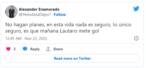 Además de Lionel Messi, que siempre está entre los temas más mencionados, el que se hizo tendencia no es nada más ni nada menos que Lautaro Martínez. El ex-Racing, que será titular en el Lusail Stadium, fue muy nombrado durante la madrugada albiceleste.
