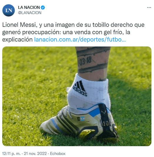 Más aún cuando la misma podría ser la del mismísimo Lionel Messi. El 10 se entrenó diferenciado en las últimas prácticas y en las primeras horas del lunes comenzó a circular una foto suya con el tobillo inflamado que encendió aún más las alarmas.