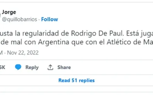 “¿Qué le hicieron a De Paul?”, fue la pregunta que sehizo la gran mayoría en Twitter. Otros hasta optaron por adjudicarle toda la responsabilidad al propio ex-Racing, al Cholo Simeone y hasta a su pareja. Lo liquidaron…