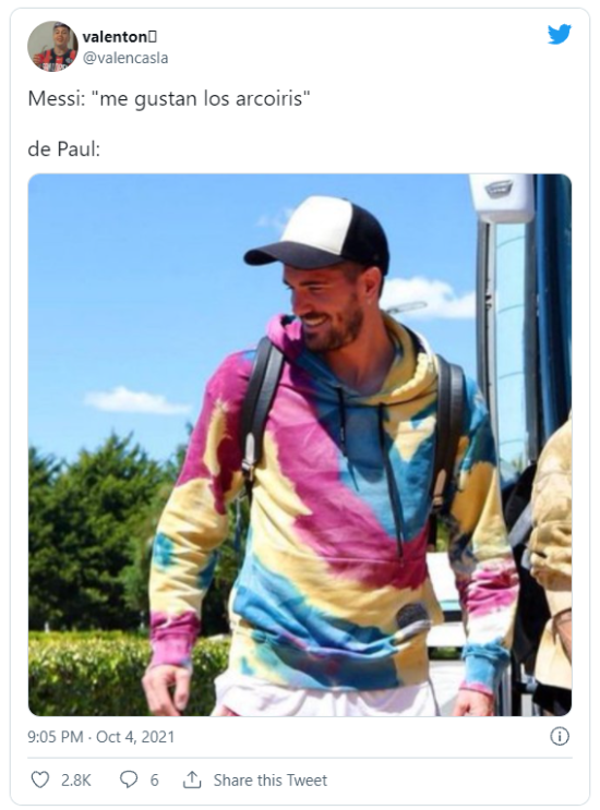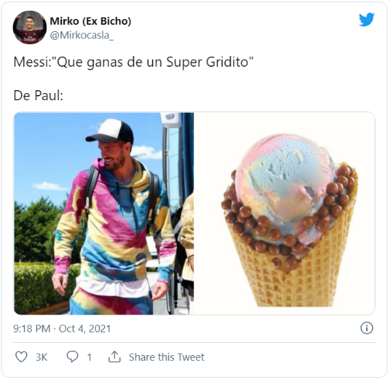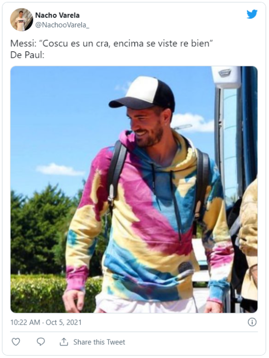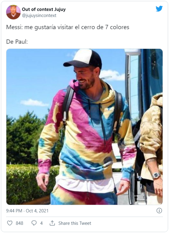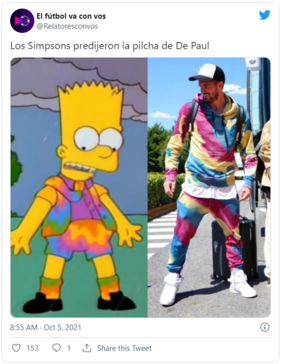 En la red social del pajarito se divirtieron con la ropa que usó el 7. Rápidamente el jugador se hizo tendencia y empezaron a circular memes sobre él. Estos contenían comparaciones con Los Simpson, un helado y hasta se mencionó al Cerro de los Siete Colores. ¡Locura total!