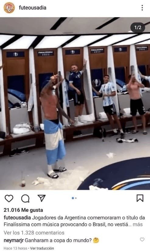 En la última semana se armó una polémica en redes por el comentario que hizo el delantero en una publicación donde se motraba a los jugadores de la “Scaloneta” celebrar el título en la Finalissima cantando canciones para Brasil. “¿Ganaron la Copa del Mundo?”, preguntó Ney entre risas, dando a entender que se trataba, para él, de un título menor.